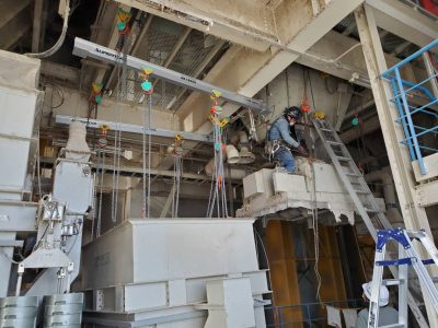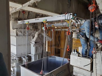 吊り上げ重量1,000kg対応のスーパーツール社製ガントリー式ビームを用いて